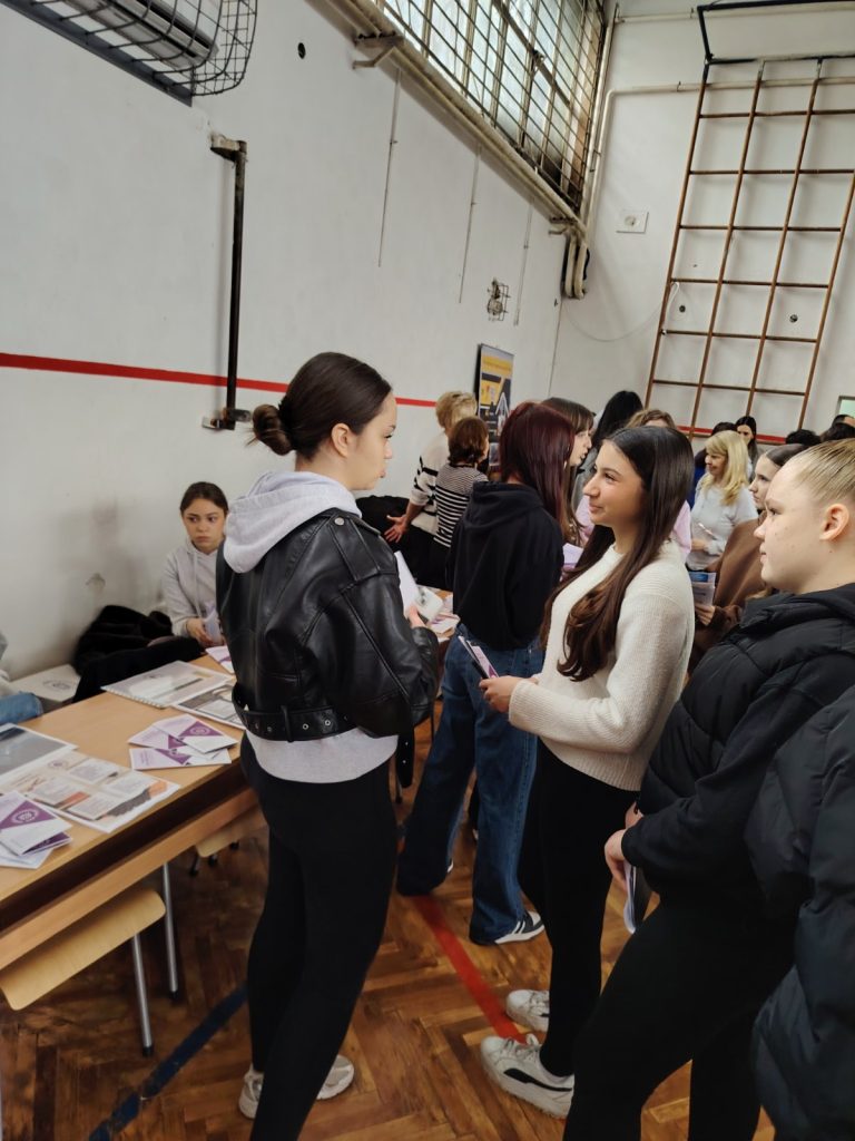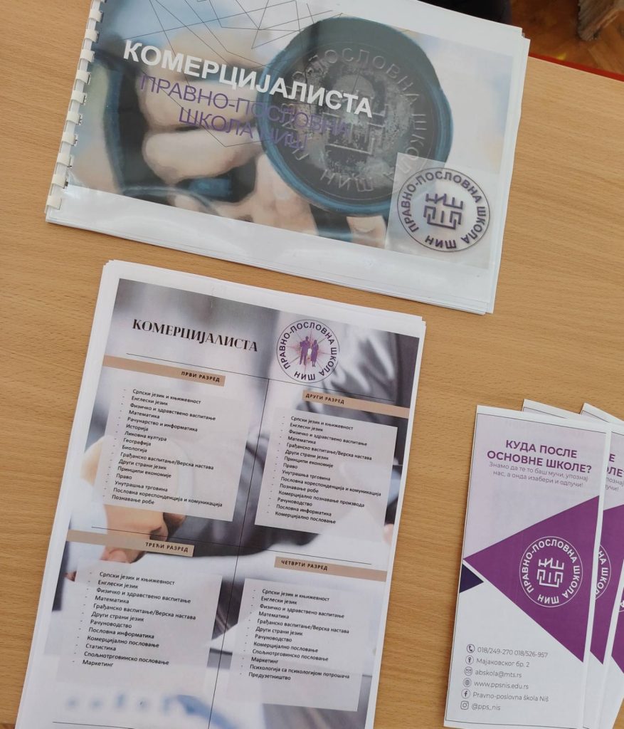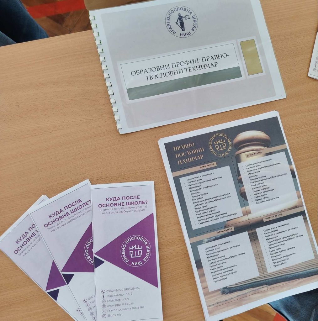 Правно-пословна школа Ниш представила је своје образовне профиле и програме на сајму професионалне оријентације у ОШ „Чегар“ Ниш. Са будућим средњошколцима и њиховим родитељима разговарале су професори наше школе Бранка Марковић и Маја Митић, као и ученице Теодора Васић III/1, Марта Радоњић и Софија Марковић III/2 , Аница Динић III/5, Дуња Јевтић и Татјана Вељковић I/5